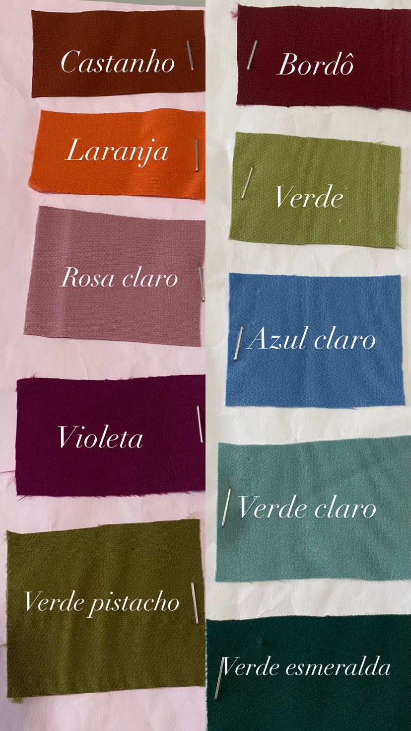 As cores assinaladas com "PE* são feitas por encomenda. Tempo estimado de produção de 7 dias.